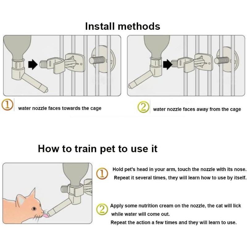 Hold your pet gently and guide their nose to the tip, or apply a bit of pet-safe treat paste on the nozzle. When they lick it, water will come out. Repeat a few times until they understand how it works.