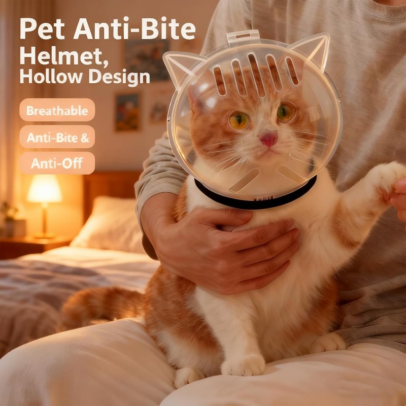 Cat Anti-Bite Protective Helmet – Breathable Hollow Design for Safe Grooming & Medication